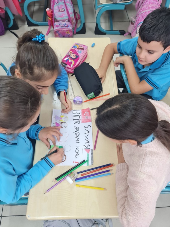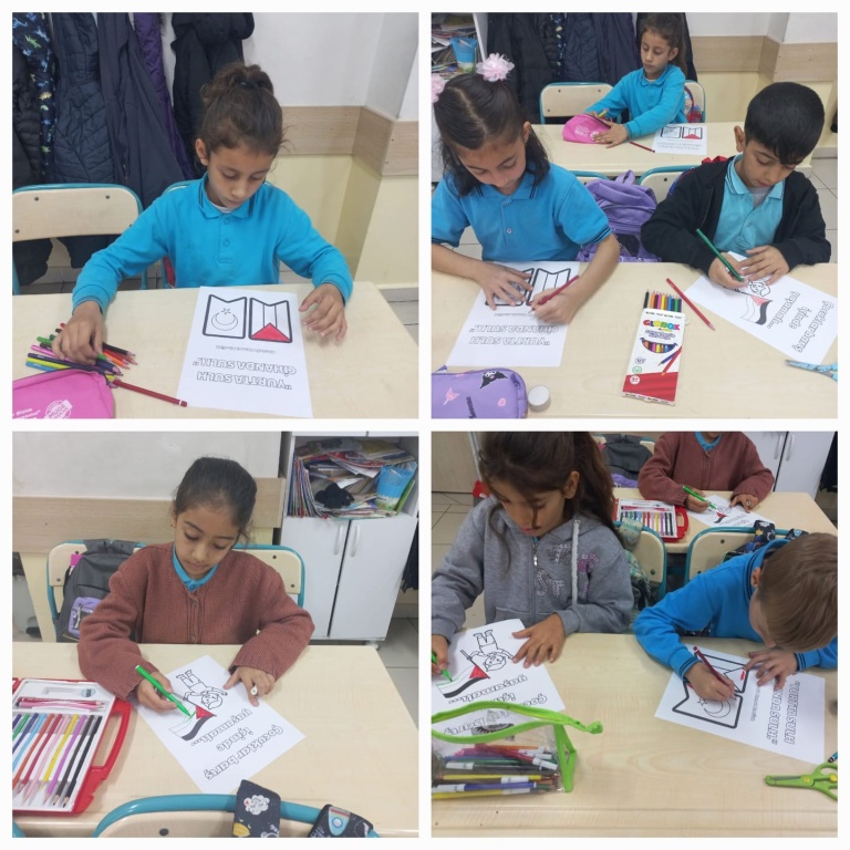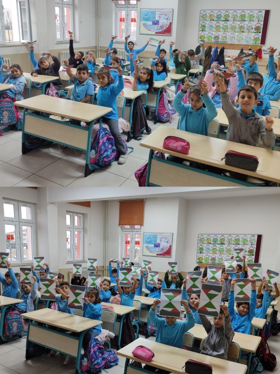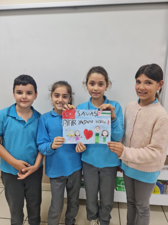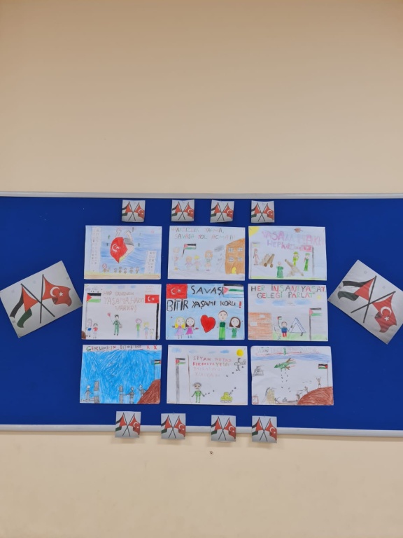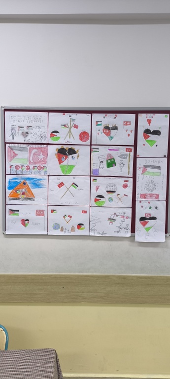 Filistin Gazze'de yaşanan insani drama dikkat çekmek, barışın ve kardeşliğin önemini hatırlatmak amacıyla okulumuzda farkındalık etkinlikleri gerçekleştirdik. Etkinlik kapsamında öğrencilerimize Filistin'de yaşanan olayları anlatan videolar izletildi, öğrenciler duygu ve düşüncelerini resim, şiir ve afiş çalışmalarıyla ifade ettiler.